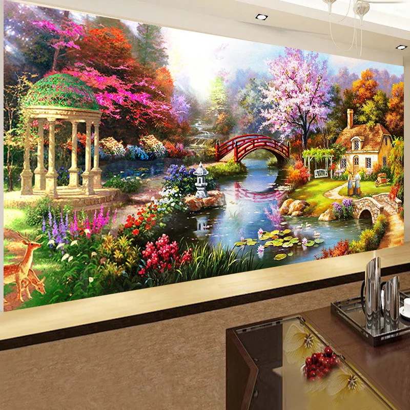 Hot Product 5D Diamond Needlework Kit Full Round Diamond Painting Dream Garden Landscape Cross Stitch Diamond E