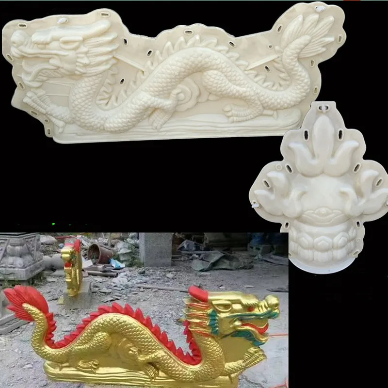 Promo 90cm/ 35.43in Traditional Two Dragon Frolicking with Fire Ball ABS Plastic Concrete Mold - Home Gar