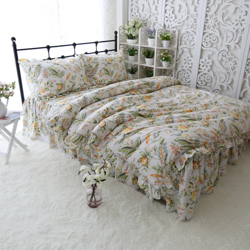 Best Price Pastoral king size bedding set full print princess bedding Garden ruffle duvet cover elegant bed sh